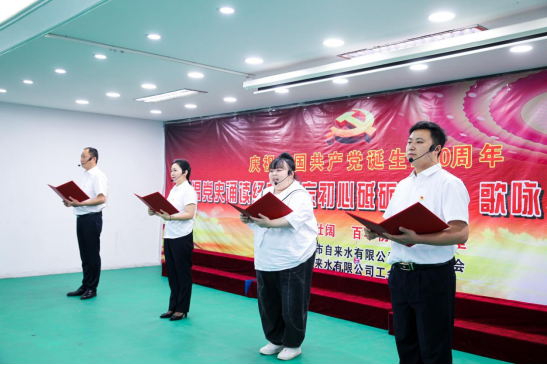 一百年風(fēng)雨歷程,一百年崢嶸歲月。為重溫黨的光輝歷程,喜迎中國共產(chǎn)黨百年華誕,5月26日,市水務(wù)集團(tuán)自來水有限公司舉行“重溫黨史誦讀經(jīng)典、不忘初心砥礪前行”誦讀、歌詠比賽。公司員工相聚一堂,用誦讀、歌唱的方式,讀黨史、念黨恩、跟黨走,上了一堂深刻的紅色黨史教育課。