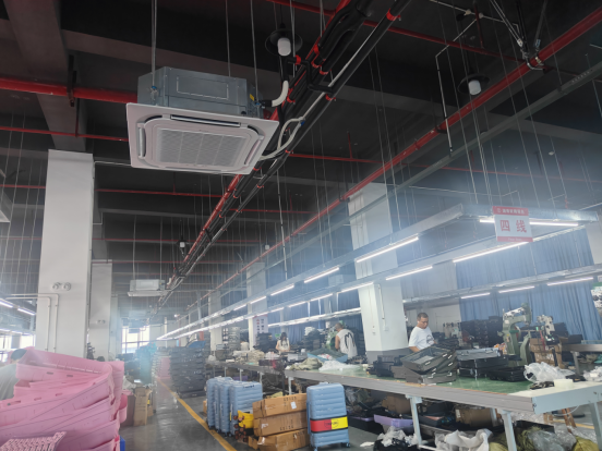 入夏以來(lái),懷化遭遇持續(xù)高溫天氣,懷化國(guó)際陸港箱包產(chǎn)業(yè)園內(nèi),所有廠房都變成了悶熱的“蒸籠”。外銷黃金期的訂單生產(chǎn)不能停,工人在高達(dá)40攝氏度左右的高溫中工作又“熱”不堪言,各企業(yè)負(fù)責(zé)人無(wú)不急在眉梢。了解到這一情況后,懷化產(chǎn)投集團(tuán)及旗下資產(chǎn)運(yùn)營(yíng)置業(yè)有限公司第一時(shí)間與陸港產(chǎn)業(yè)園對(duì)接,承接了為其統(tǒng)一安裝空調(diào)的業(yè)務(wù)。