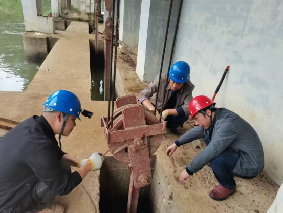 (圖二:運(yùn)行班組人員對(duì)閘門(mén)進(jìn)行檢查并泄洪)